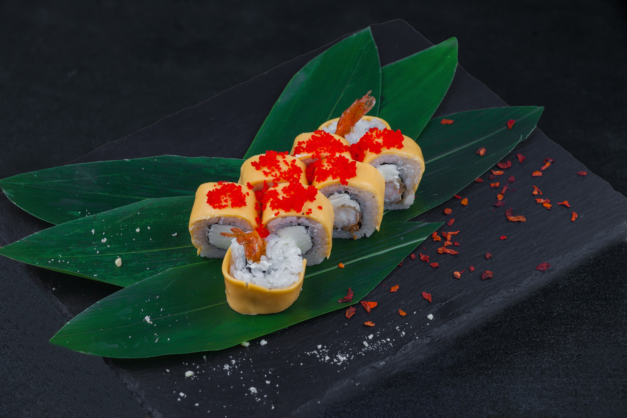 нори, рис, крем-сыр, креветка, сыр тостовый, тобико